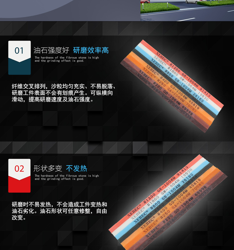 1、采用最適合研磨的結(jié)晶結(jié)構(gòu),使研磨功效比傳統(tǒng)油石有非常大的提高。