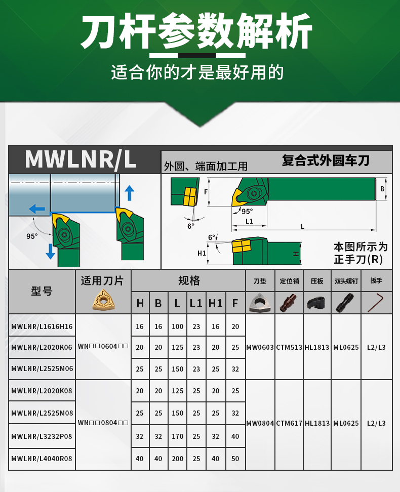 數(shù)控刀桿刀具M(jìn)WLNR1616H08/MWLNL2020K08 95度外圓車床刀桿