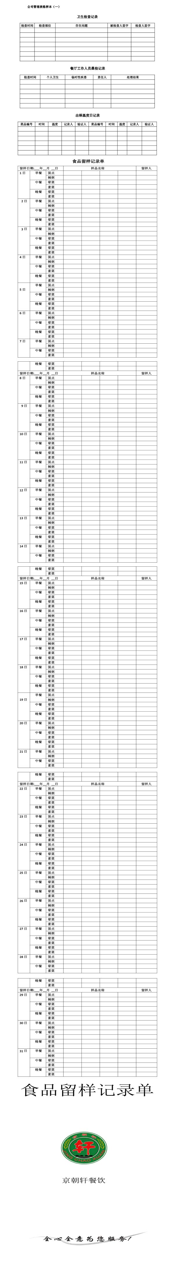 : 公司管理表格樣本(二)