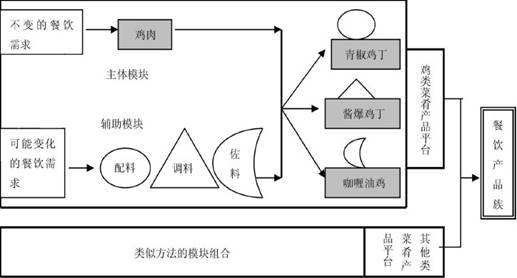 ? ? ? ?其次,將中式菜點(diǎn)進(jìn)行系統(tǒng)的分析,并在分析的基礎(chǔ)上,把大批量定制或模塊化生產(chǎn)原理運(yùn)用到產(chǎn)品的整體設(shè)計(jì)與制作過(guò)程,即將產(chǎn)品的各個(gè)部件形成標(biāo)準(zhǔn)化生產(chǎn)模塊,以不同的標(biāo)準(zhǔn)化生產(chǎn)模塊的組合和信息編程形成新的產(chǎn)品。