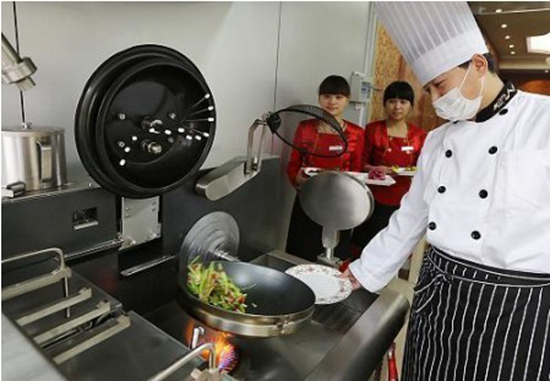 ? ? ? ?據(jù)肖寒衛(wèi)的介紹,這種“烹飪機器人”每臺的采購價為17萬元。在烹飪機器人的電腦系統(tǒng)里,已經儲存了上百道菜的菜譜。而這套“機器人”炒菜系統(tǒng),可以用電也可以用氣,用它來炒菜不僅入味均勻,而且也降低了經營的人力成本。此外,傳統(tǒng)的依靠廚師炒菜,由于個人技術的不同,炒出來的菜品在味道上總會有些差異,可是用“機器人”來炒菜,它會根據(jù)系統(tǒng)內儲存的菜譜發(fā)指令,店里的員工只需要按照指令進行配合。